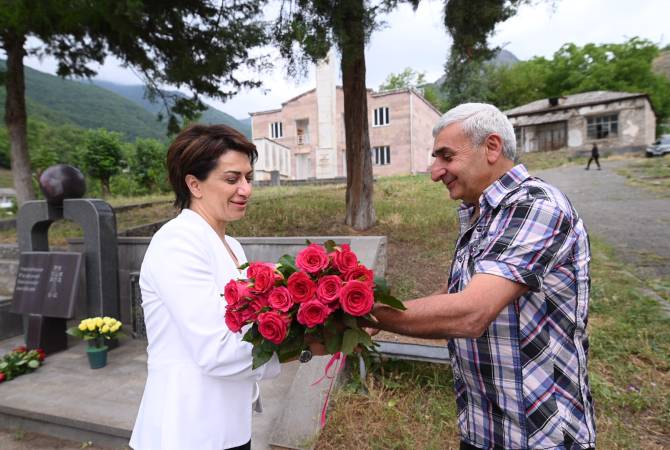 Анна Акопян также посетила два мемориала в Шикаохе: Мемориал жертвам Великой Отечественной войны и Мемориал жертвам Арцахской освободительной войны.