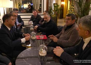 Делегация во главе с президентом Республики Арцах Араиком Арутюняном, находящаяся с рабочим визитом во Французской Республике, встретилась в Париже с ...
